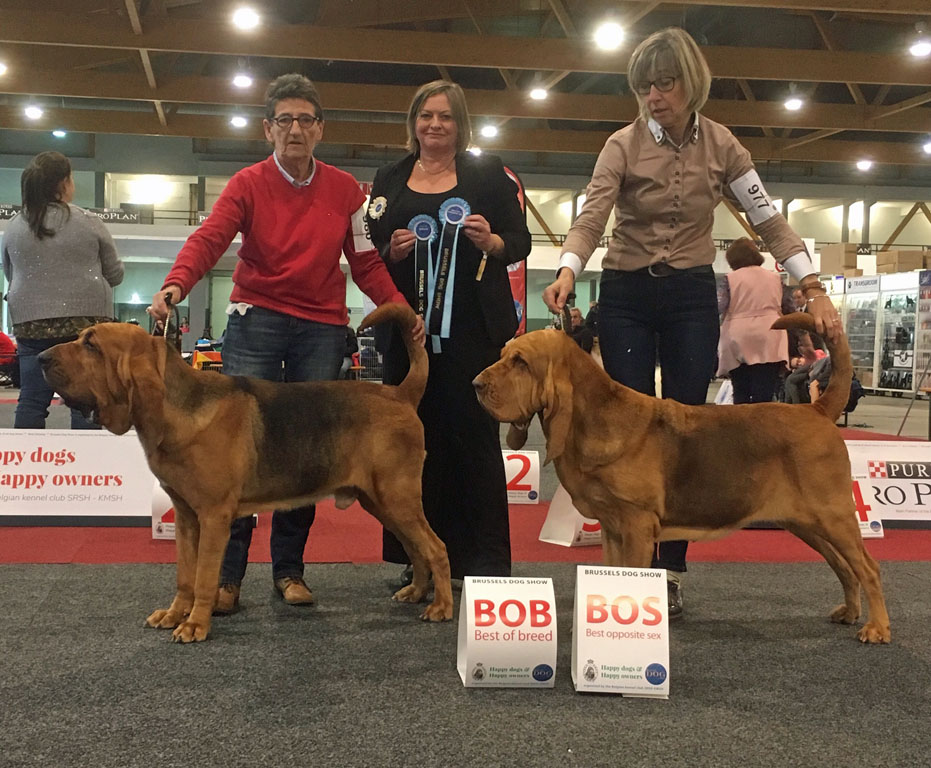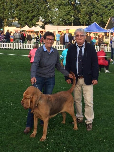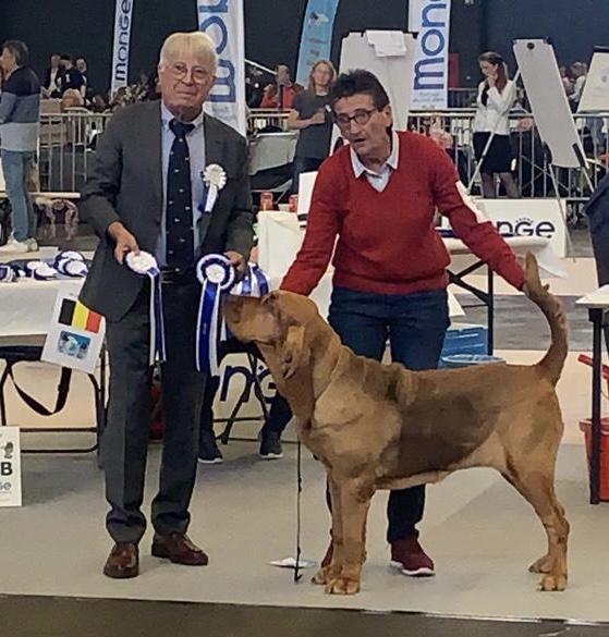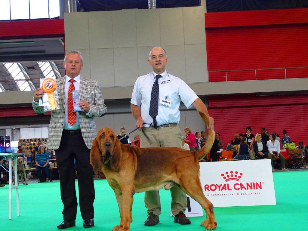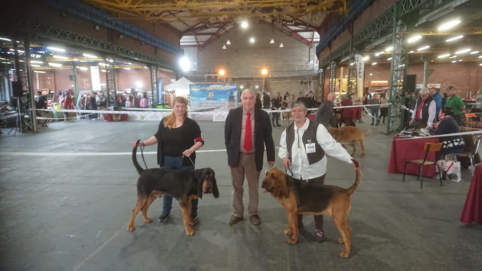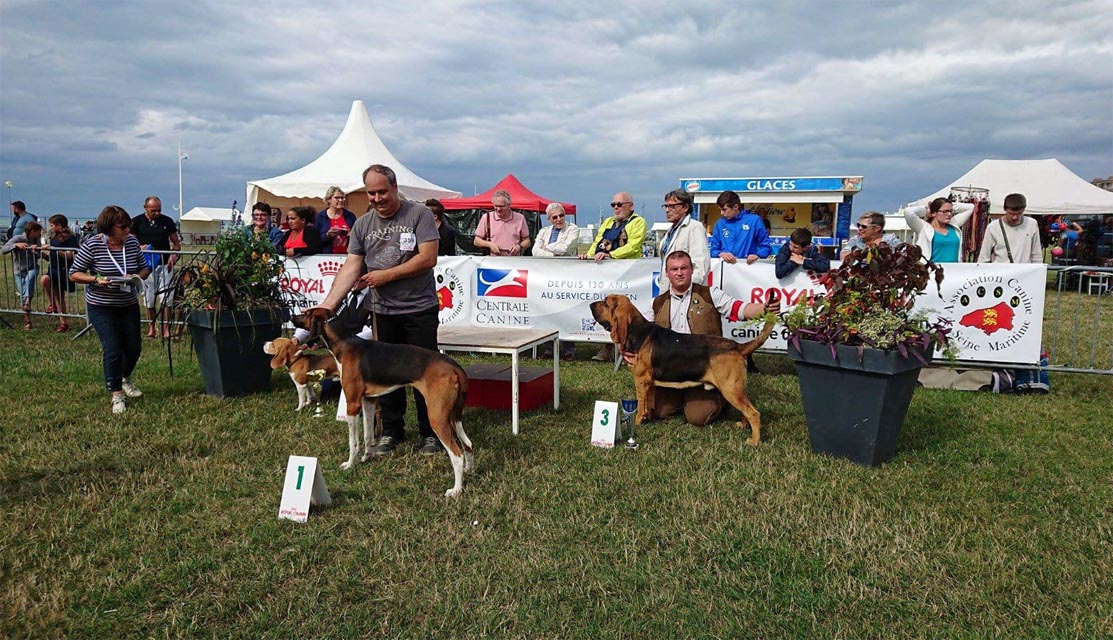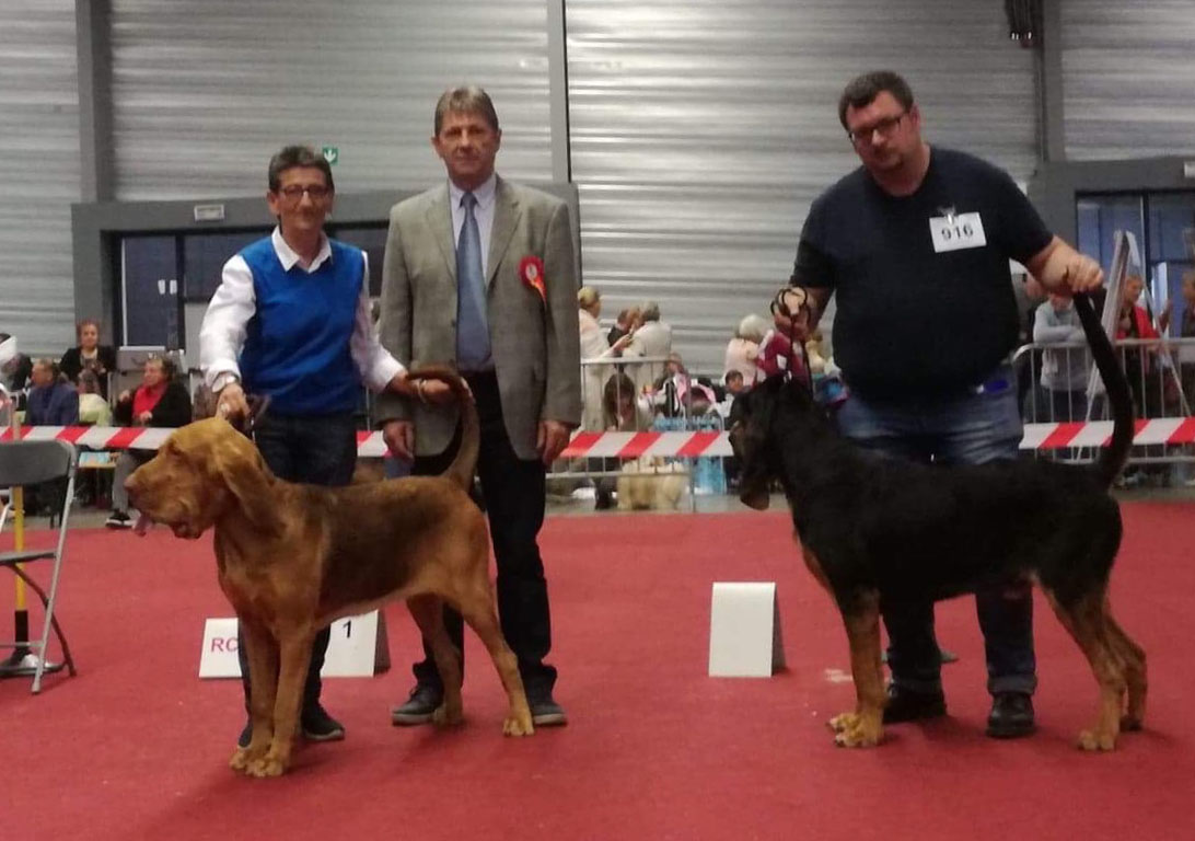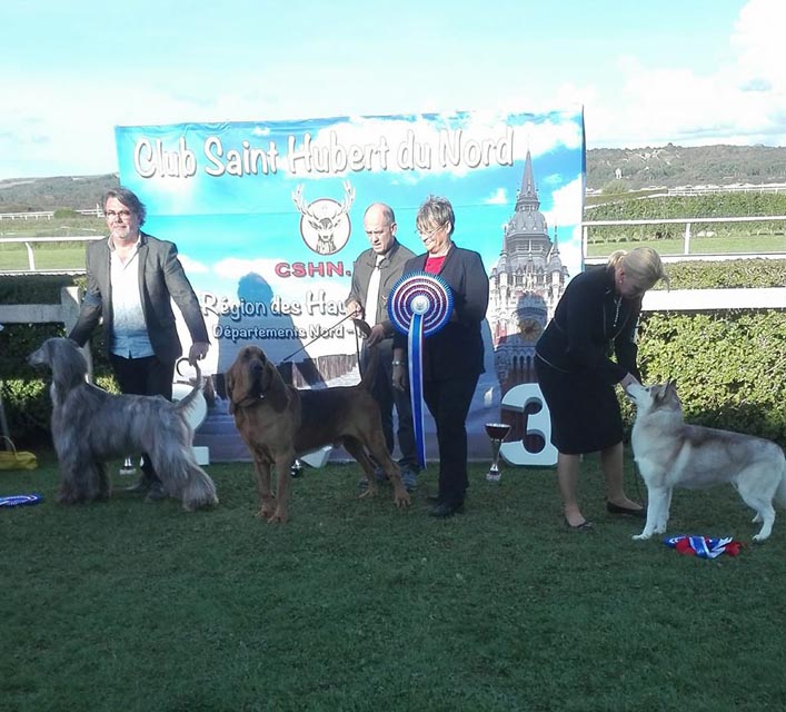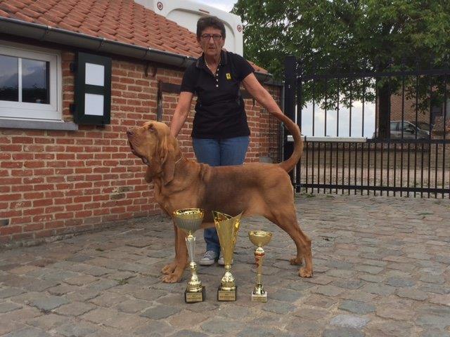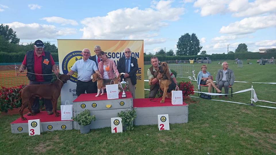 - 25/06/2016 Judge: Mrs. De Ridder (B) Open class males: Ike of Robert's Choice: 1 VG Champion class males: Ch. Mortimer de la Voix Royale: 1 EX - CAC - Belgian Champion - 3rd Best Male in Show Ch. Merlin de la Meute d'Antan: 2 EX - RCAC Baby class females: Philomène Légende d'Autrefois: 1 VP - Best Baby Petra Légende d'Autrefois: 2 VP Puppy class females: Duna-Artemis Famous Alhavant: 1 P Junior class females: Orthense de la Voix Royale: 1 P Intermediate class females: Odyssée Truffe Médiévale: 1 VG Open class females: Noblesse de la Meute d'Antan: 1 EX - CAC - 3rd Best Female in Show Champion class females: Ch. Marylou de la Voix Royale: 1 EX - RCAC Ch. Marie Hera de la Meute d'Antan: 2 EX Ch. Mortimer de la Voix Royale & Ch. Marylou de la Voix Royale: 3rd Best Couple |