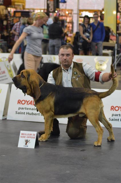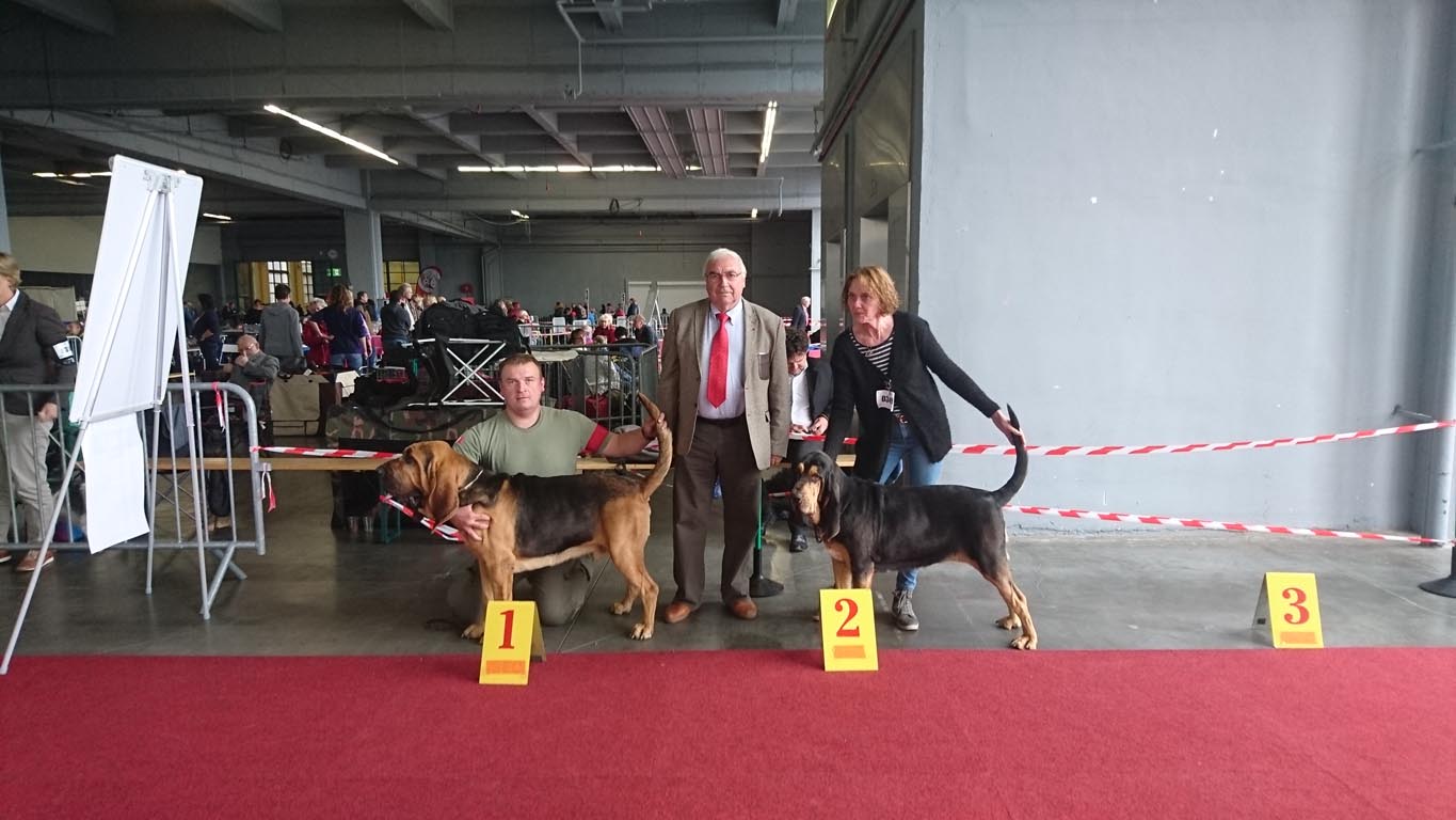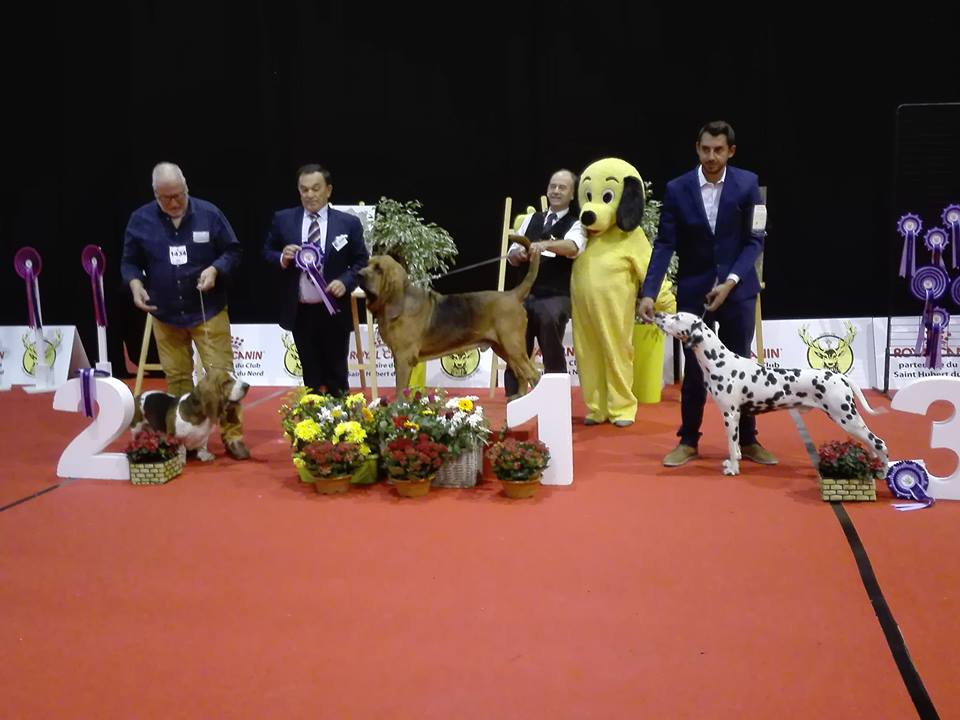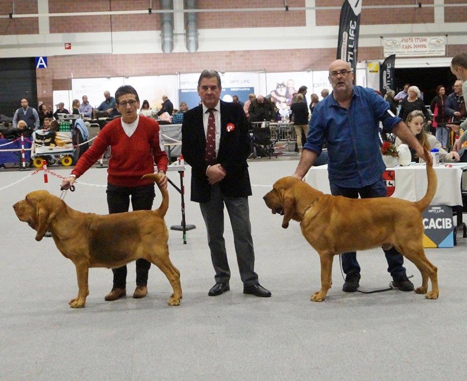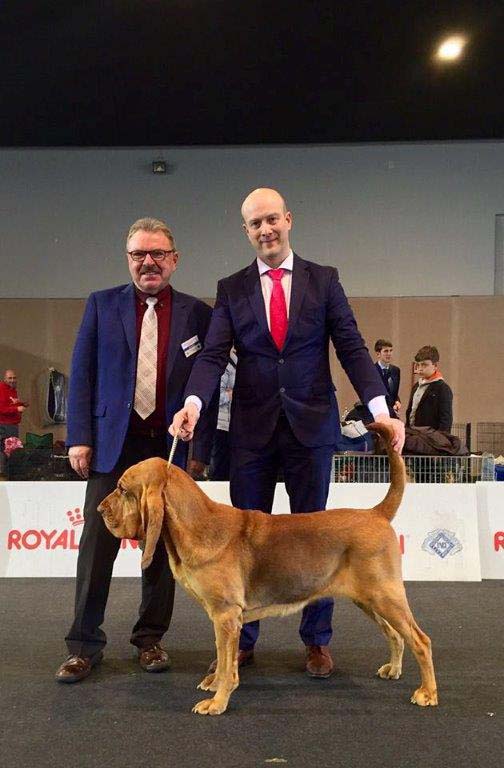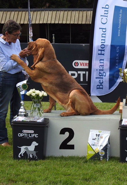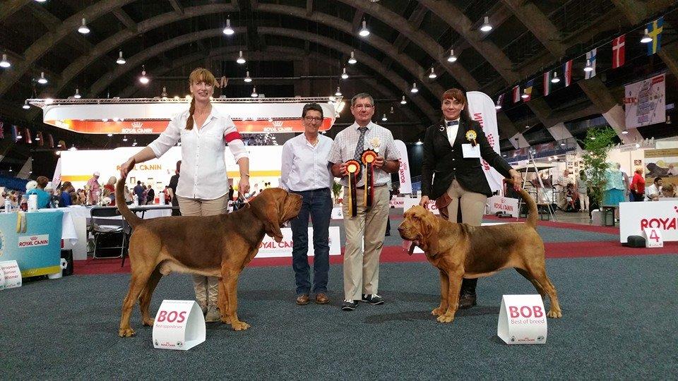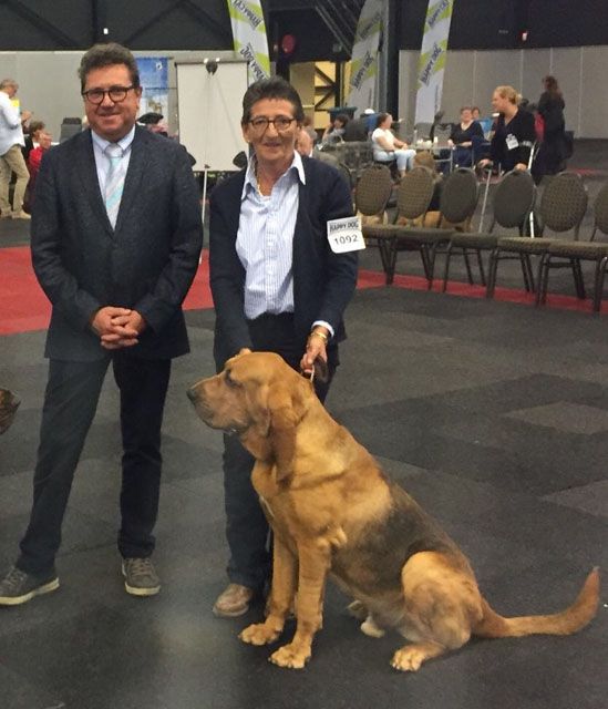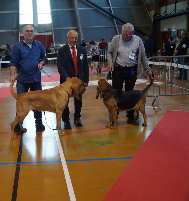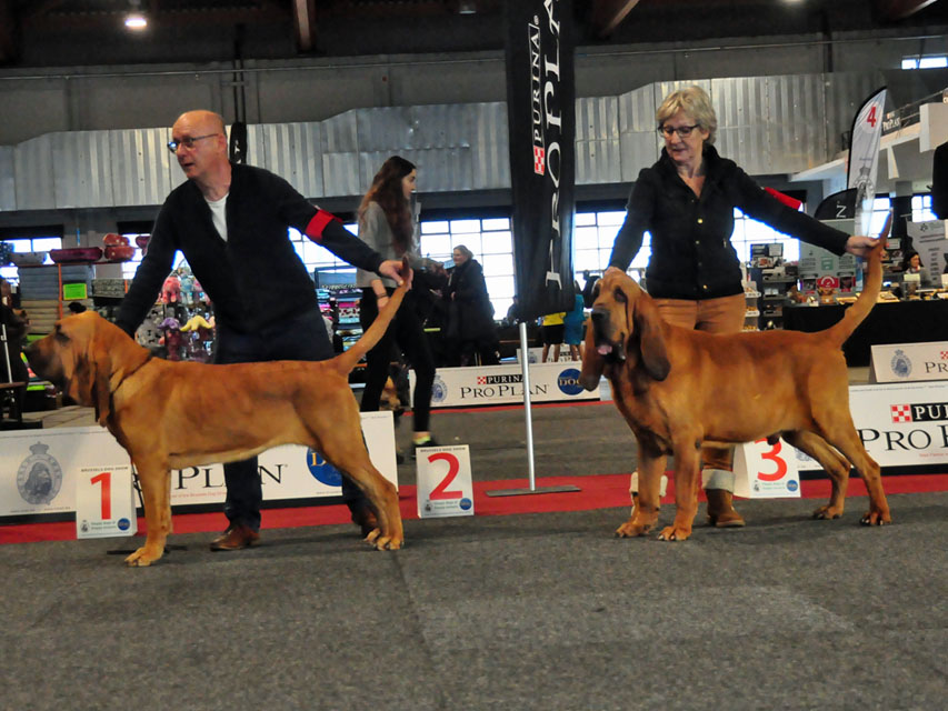- 25/06/2016 Judge: Mrs. De Ridder (B) Open class males: Ike of Robert's Choice: 1 VG Champion class males: Ch. Mortimer de la Voix Royale: 1 EX - CAC - Belgian Champion - 3rd Best Male in Show Ch. Merlin de la Meute d'Antan: 2 EX - RCAC Baby class females: Philomène Légende d'Autrefois: 1 VP - Best Baby Petra Légende d'Autrefois: 2 VP Puppy class females: Duna-Artemis Famous Alhavant: 1 P Junior class females: Orthense de la Voix Royale: 1 P Intermediate class females: Odyssée Truffe Médiévale: 1 VG Open class females: Noblesse de la Meute d'Antan: 1 EX - CAC - 3rd Best Female in Show Champion class females: Ch. Marylou de la Voix Royale: 1 EX - RCAC Ch. Marie Hera de la Meute d'Antan: 2 EX Ch. Mortimer de la Voix Royale & Ch. Marylou de la Voix Royale: 3rd Best Couple |