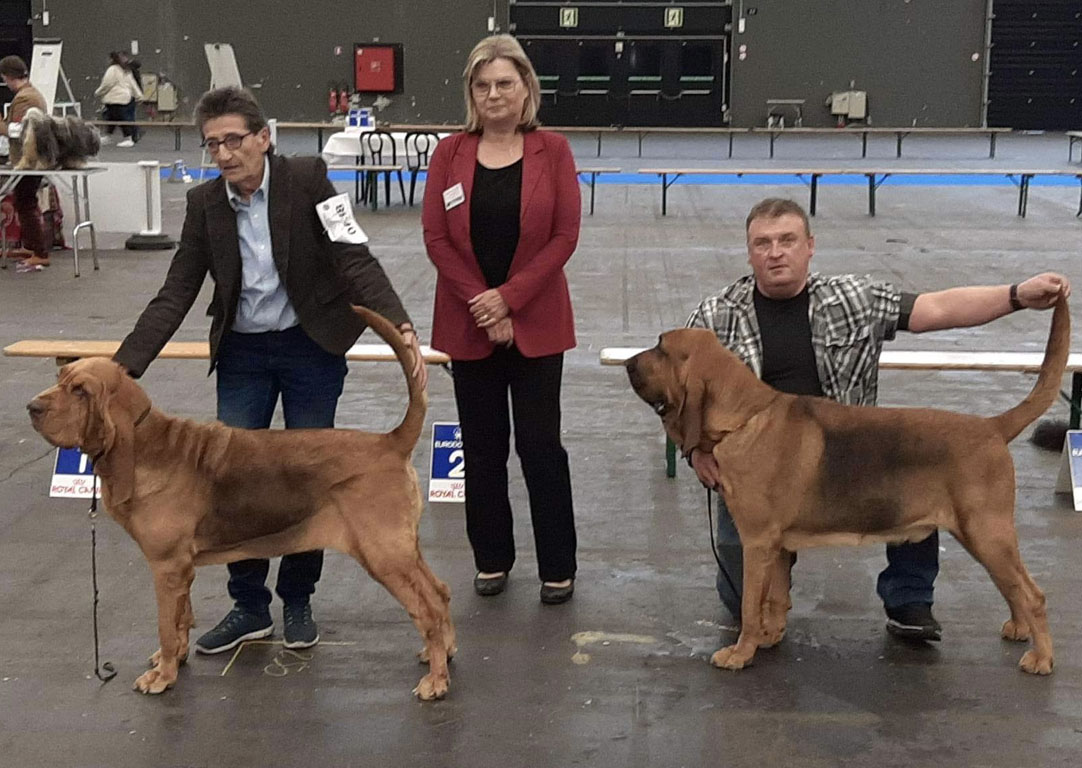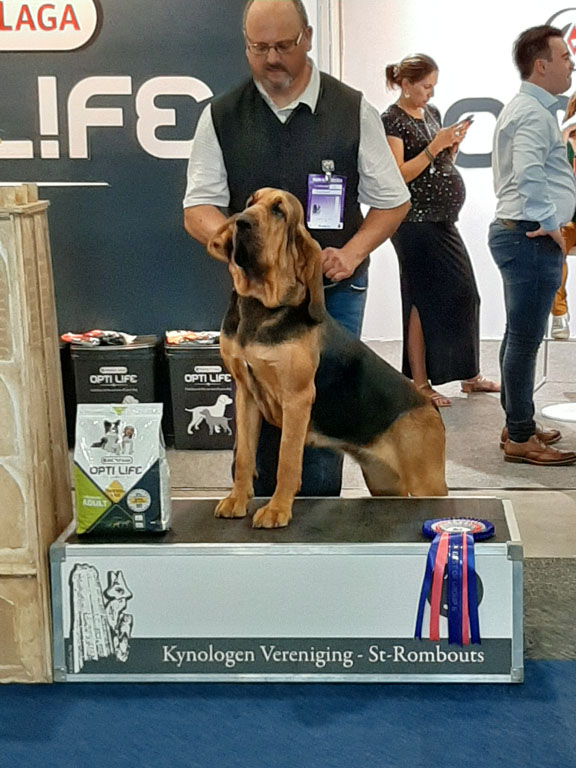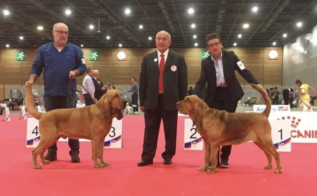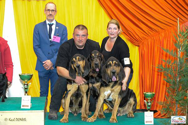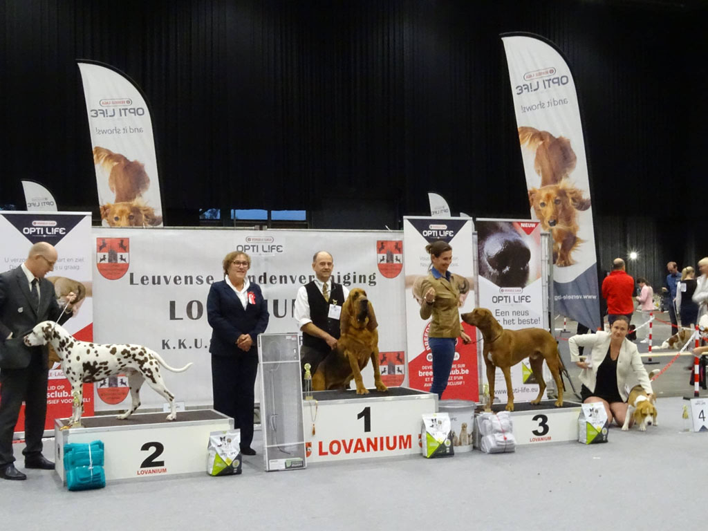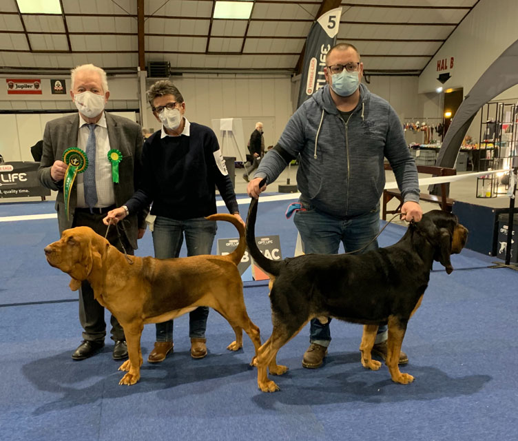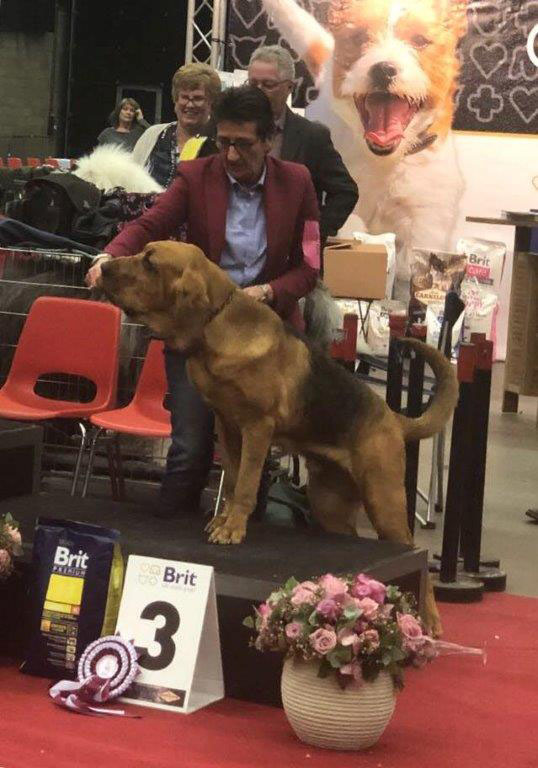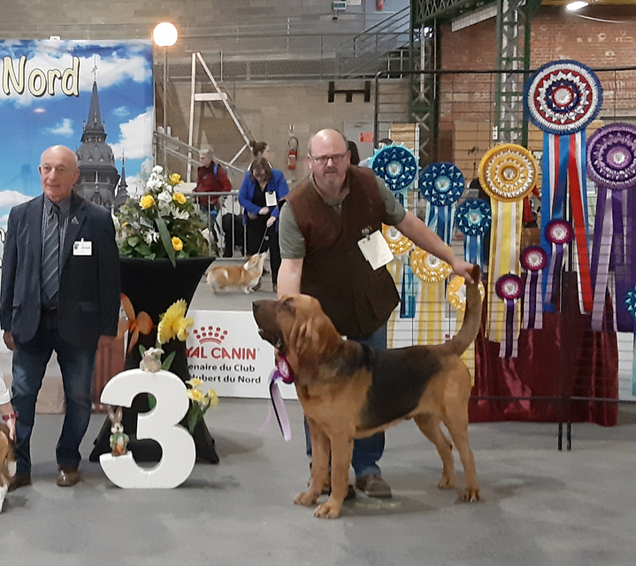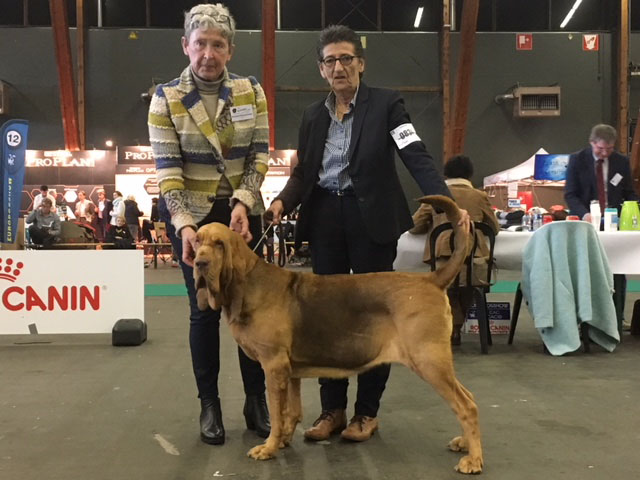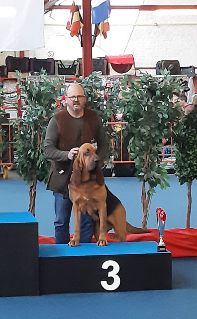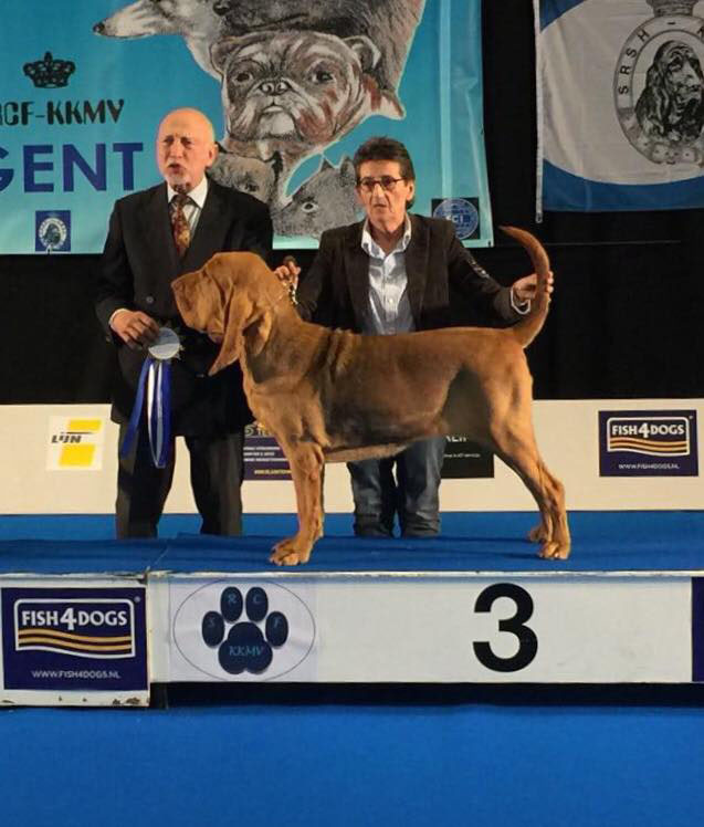 - 25/06/2016 Judge: Mrs. De Ridder (B) Open class males: Ike of Robert's Choice: 1 VG Champion class males: Ch. Mortimer de la Voix Royale: 1 EX - CAC - Belgian Champion - 3rd Best Male in Show Ch. Merlin de la Meute d'Antan: 2 EX - RCAC Baby class females: Philomène Légende d'Autrefois: 1 VP - Best Baby Petra Légende d'Autrefois: 2 VP Puppy class females: Duna-Artemis Famous Alhavant: 1 P Junior class females: Orthense de la Voix Royale: 1 P Intermediate class females: Odyssée Truffe Médiévale: 1 VG Open class females: Noblesse de la Meute d'Antan: 1 EX - CAC - 3rd Best Female in Show Champion class females: Ch. Marylou de la Voix Royale: 1 EX - RCAC Ch. Marie Hera de la Meute d'Antan: 2 EX Ch. Mortimer de la Voix Royale & Ch. Marylou de la Voix Royale: 3rd Best Couple |
