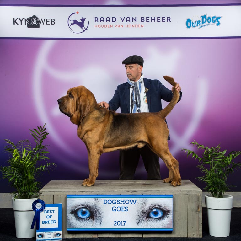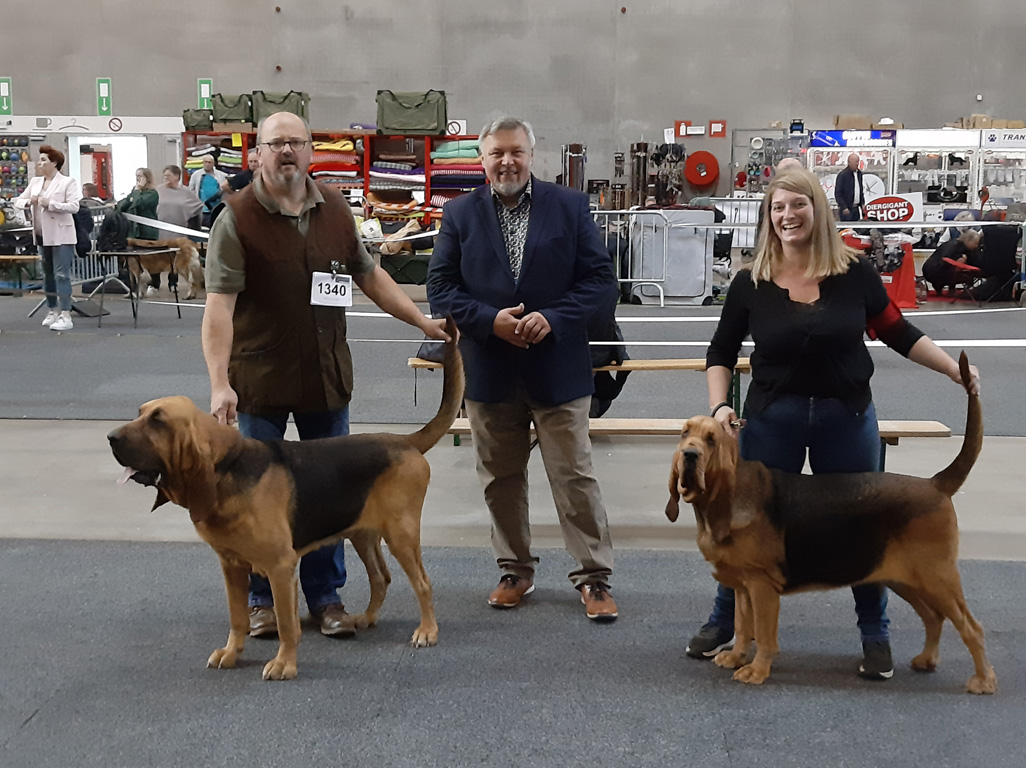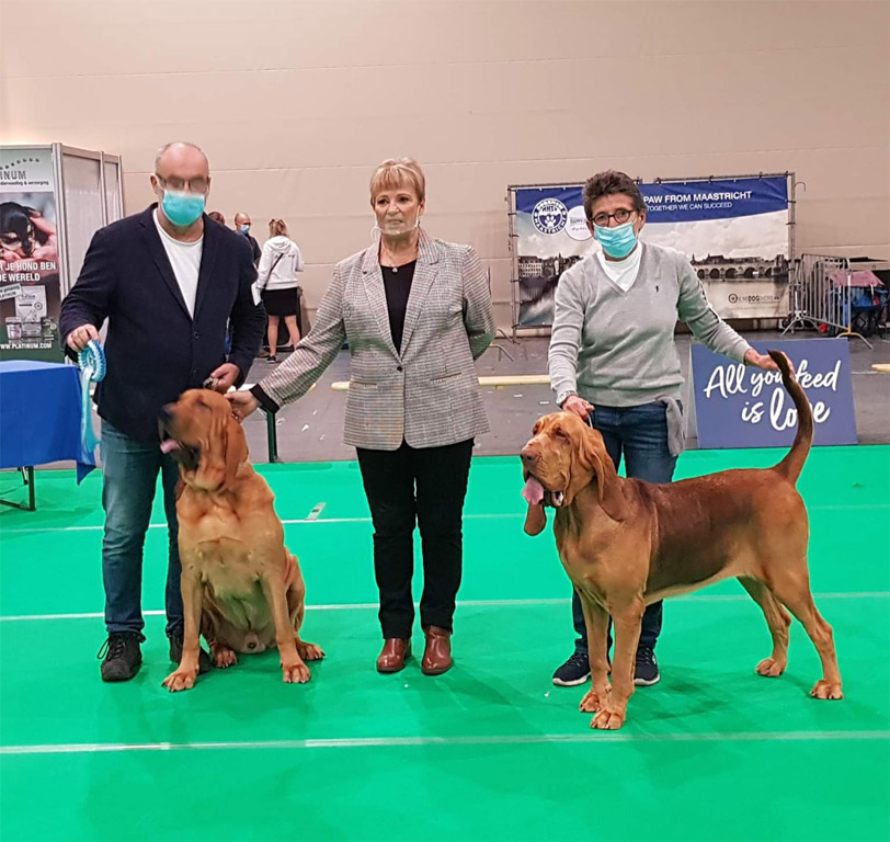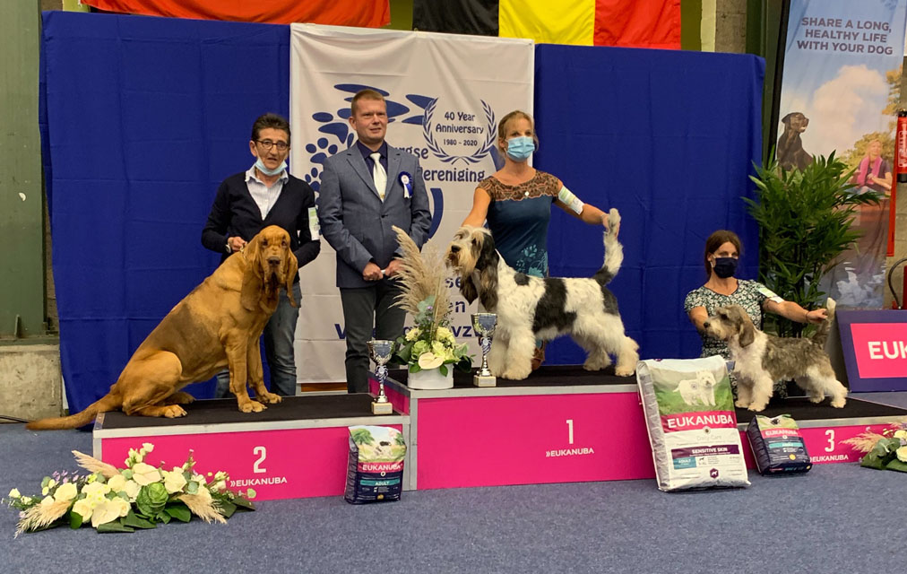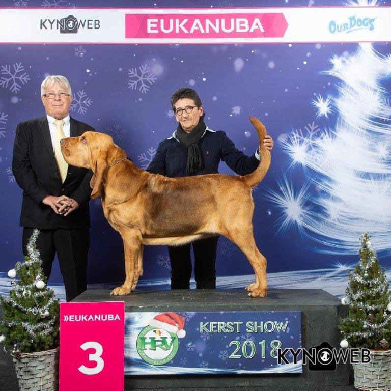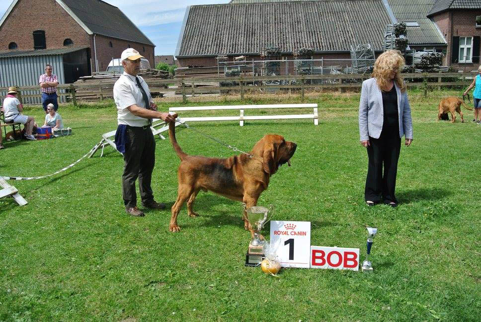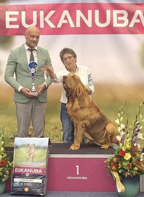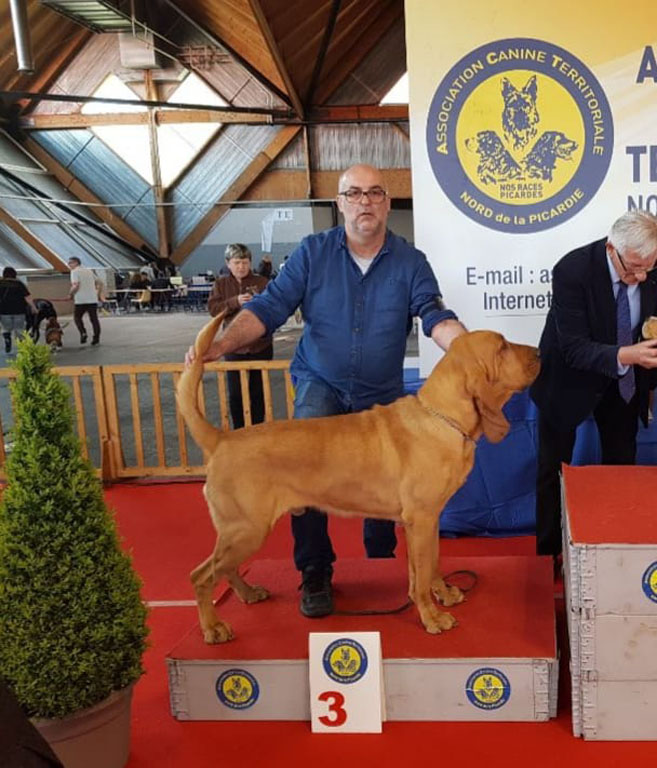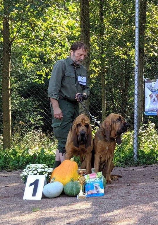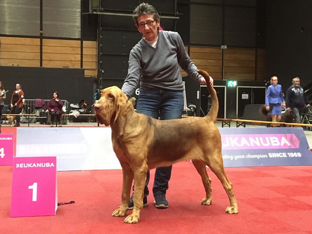 - 25/06/2016 Judge: Mrs. De Ridder (B) Open class males: Ike of Robert's Choice: 1 VG Champion class males: Ch. Mortimer de la Voix Royale: 1 EX - CAC - Belgian Champion - 3rd Best Male in Show Ch. Merlin de la Meute d'Antan: 2 EX - RCAC Baby class females: Philomène Légende d'Autrefois: 1 VP - Best Baby Petra Légende d'Autrefois: 2 VP Puppy class females: Duna-Artemis Famous Alhavant: 1 P Junior class females: Orthense de la Voix Royale: 1 P Intermediate class females: Odyssée Truffe Médiévale: 1 VG Open class females: Noblesse de la Meute d'Antan: 1 EX - CAC - 3rd Best Female in Show Champion class females: Ch. Marylou de la Voix Royale: 1 EX - RCAC Ch. Marie Hera de la Meute d'Antan: 2 EX Ch. Mortimer de la Voix Royale & Ch. Marylou de la Voix Royale: 3rd Best Couple |
