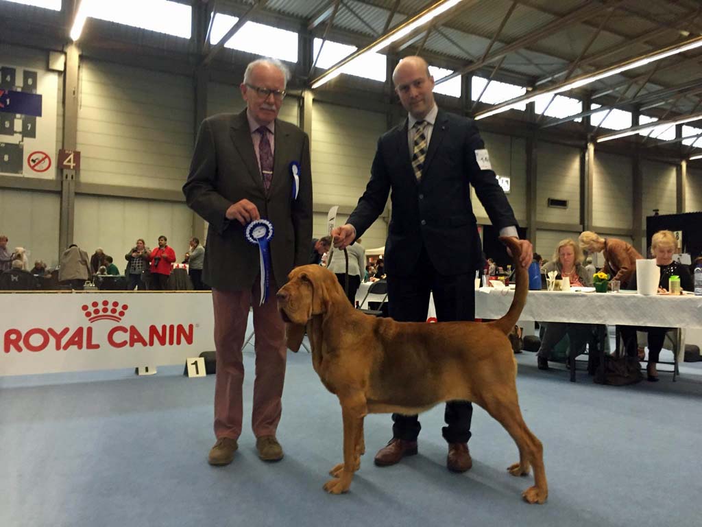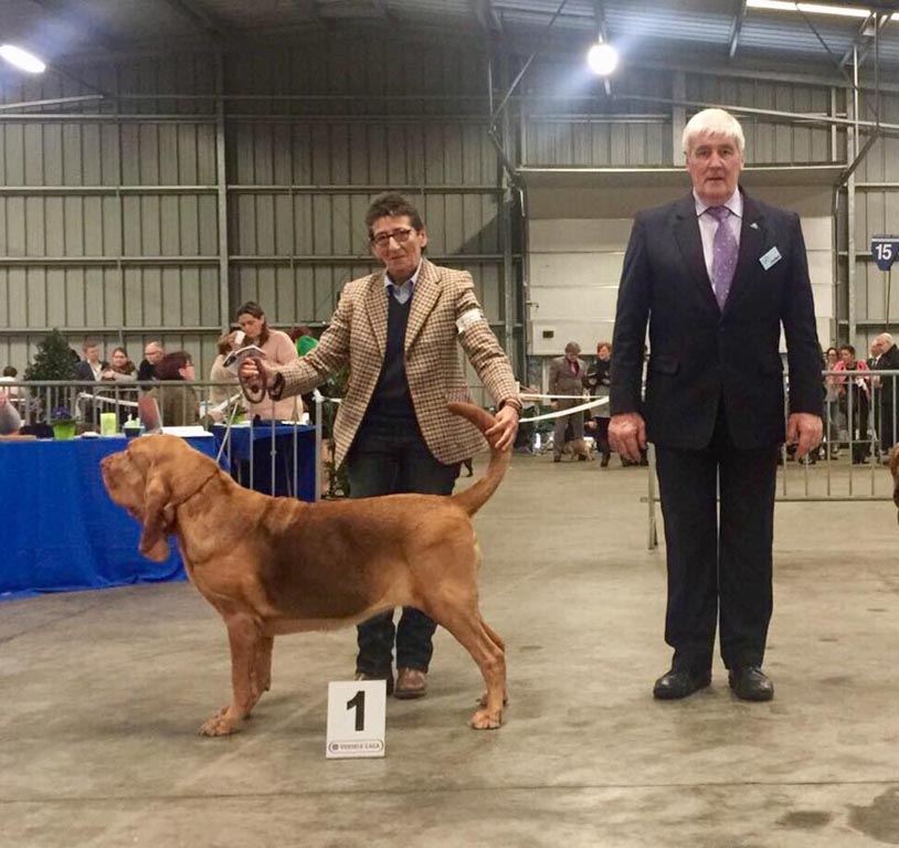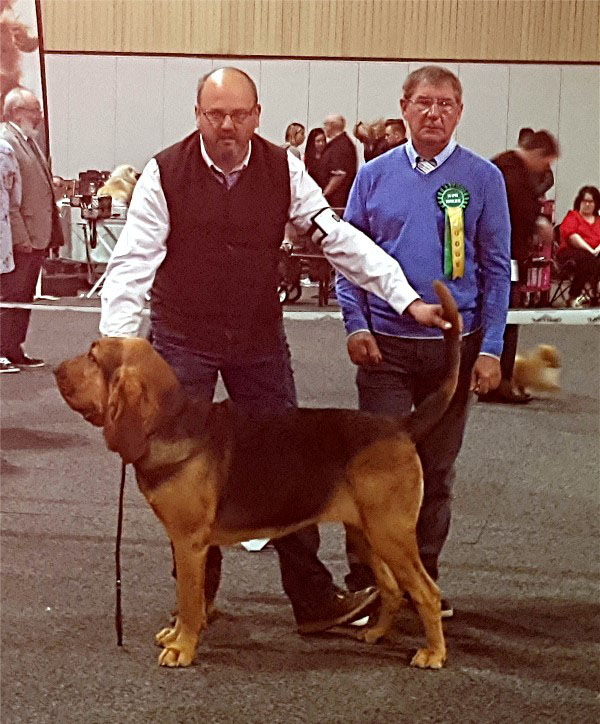 02/07/2016 Judge: Mr. Eddie Patterson (IRL) Intermediate class males: Loamy Lane's Nash: 1 EX - RCAC Champion class males: Multi Ch. Kazan Truffe Médiévale: 1 EX - CAC - BOB Veteran class males: Multi Ch. Fiacre Truffe Médiévale: 1st pl. - Best Veteran - BIS Veteran Junior class females: Lison de la Colline du Bosc: 1 EX - JCAC - BOS Open class females: Josefine de la Colline du Bosc: 2 VG |