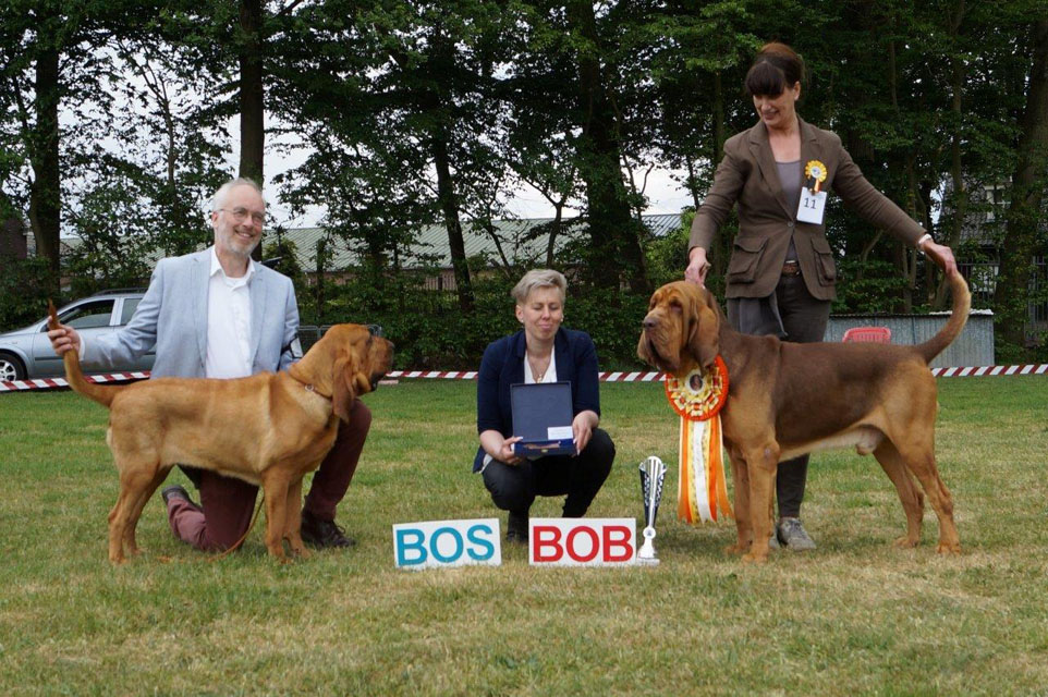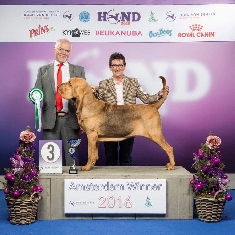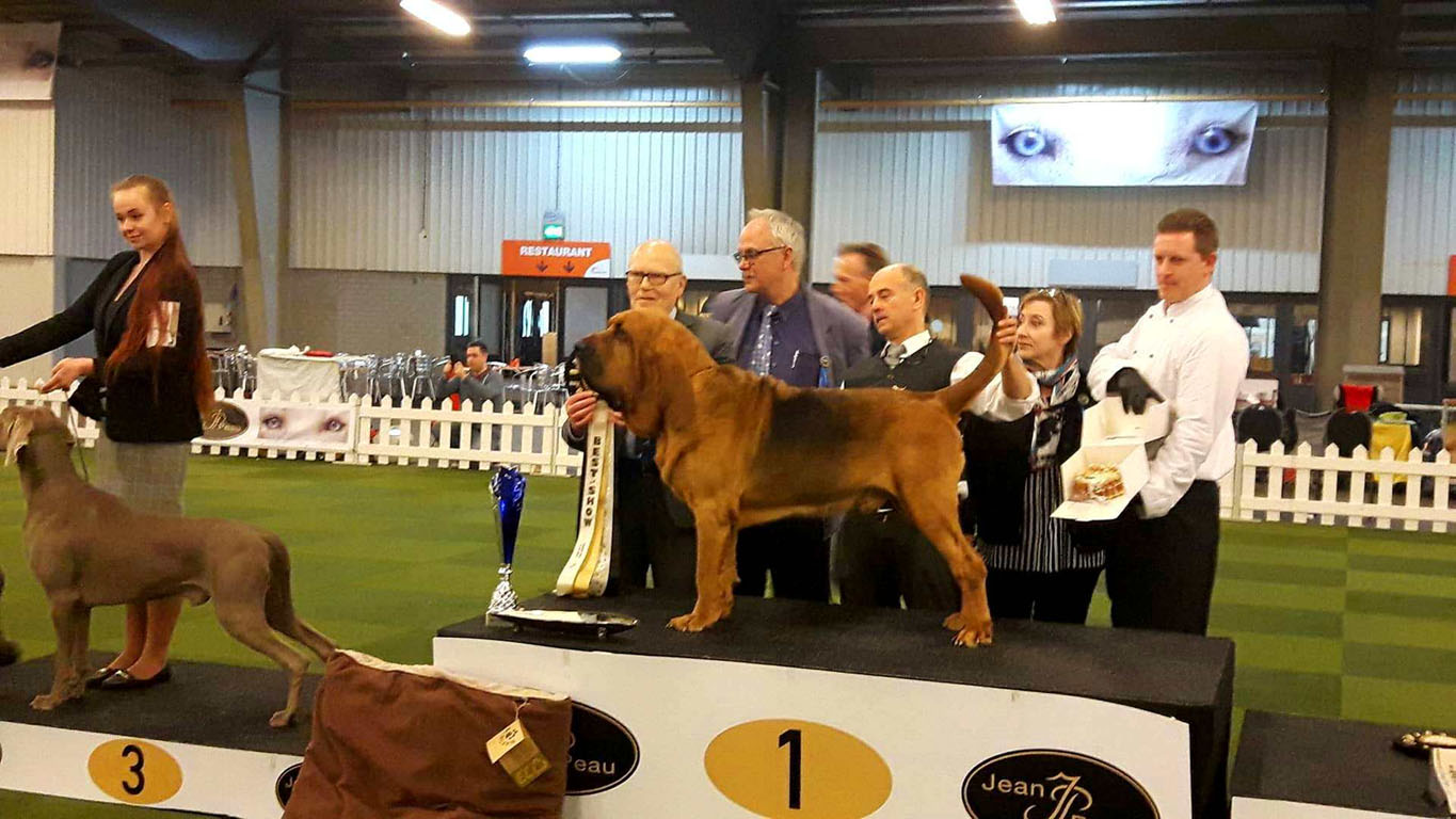 National Dog Show Wieze (B) - 14/05/2016 Judge: Mr. J. De Cuyper (B) Junior class males: Oracle de la Voix Royale: 1 VG - Junior Belgian Champion Intermediate class males: Olympius de la Voix Royale: 1 ZG Open class males: Napoléon Bonaparte of Lufon Royal Pride: 1 EX - CAC - BOB - BIG 1 Champion class males: Mulit Ch. Hector of Lufon Royal Pride: 1 EX - RCAC Open class females: Noblesse de la Meute d'Antan: 1 VG Champion class females: Multi Ch. Margot de la Meute d'Antan: 1 EX - CAC - BOS |